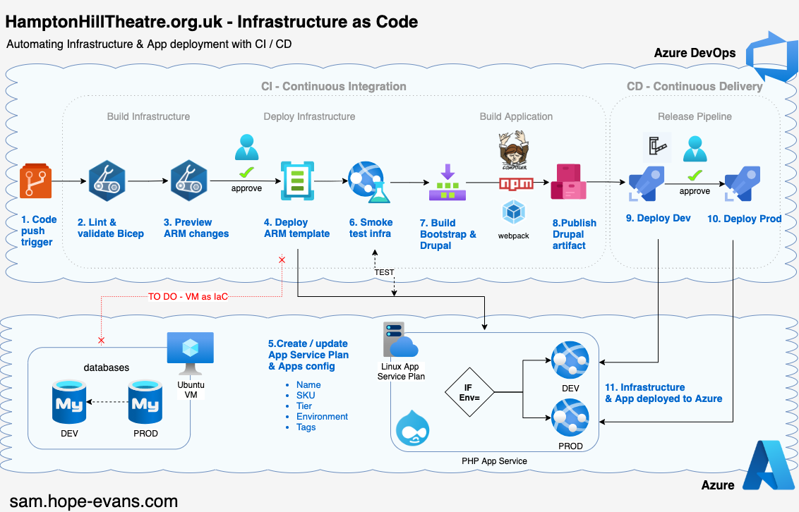 This is the last of a 3 part article on exploring Azure, Drupal & DevOps through a new website project for the Hampton Hill Theatre.
