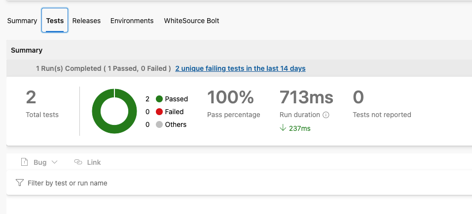 To secure the pipeline a WhiteSourceBolt tasks gets run which reports security vulnerabilities and license risks. This helps to start a DevSecOps model.
