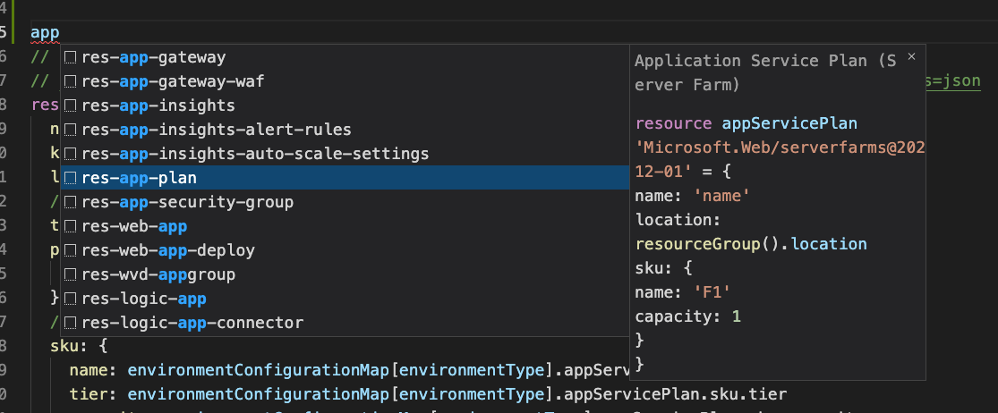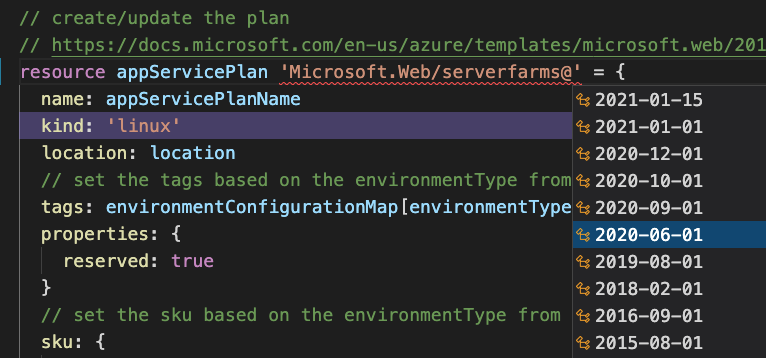 resource appServicePlan 'Microsoft.Web/serverFarms@2020-06-01' = {