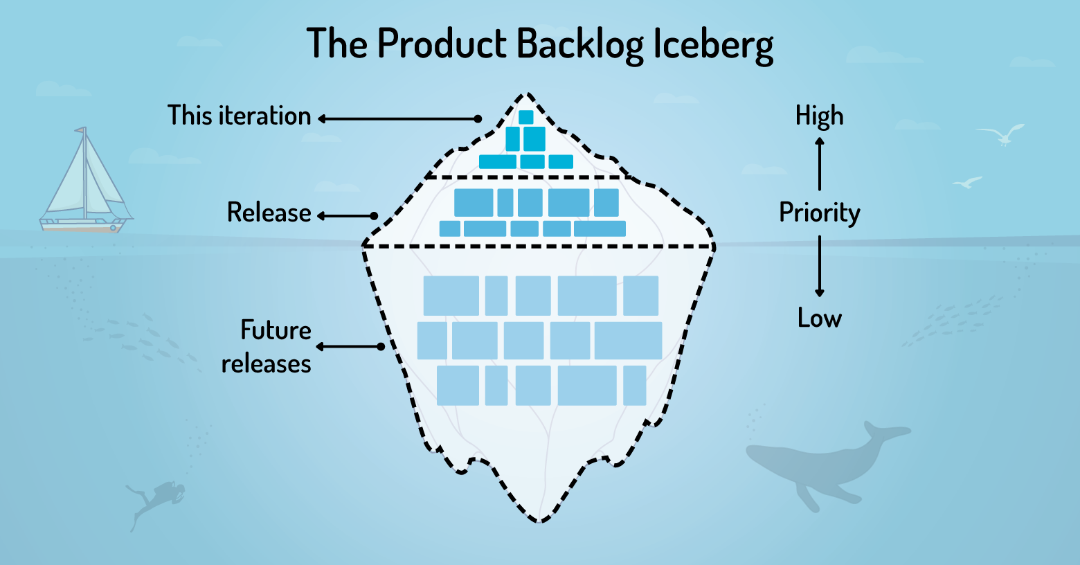 Finally, a great way to visualise that product backlog and goal is the Iceberg.