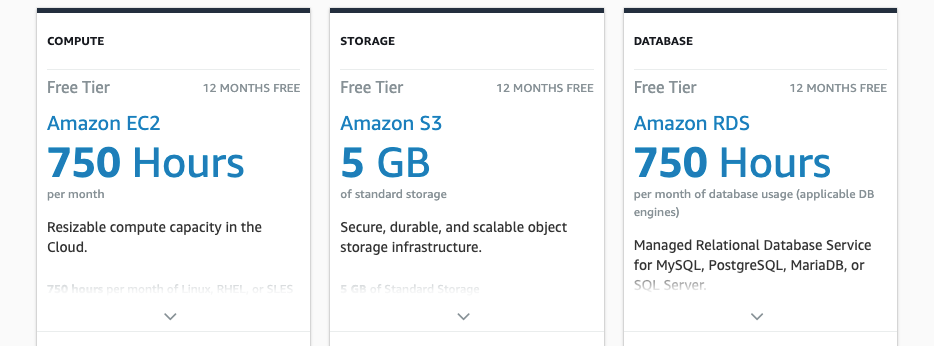 You can sign up for the AWS Free Tier, this gives you some services free for 12 months, others just short trials and some always free if you stay within the monthly limits.